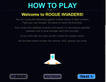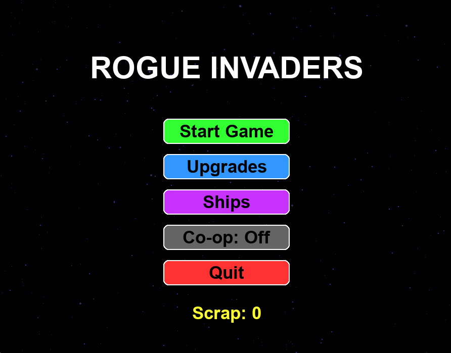 Welcome to Rogue Invaders, an intense arcade-style space shooter that blends classic gameplay with roguelike progression. Fight off relentless enemy waves, gather scrap to unlock new ships, and unlock devastating weapons upgrades. All while climbing the endless ladder of increasingly complex challenges.